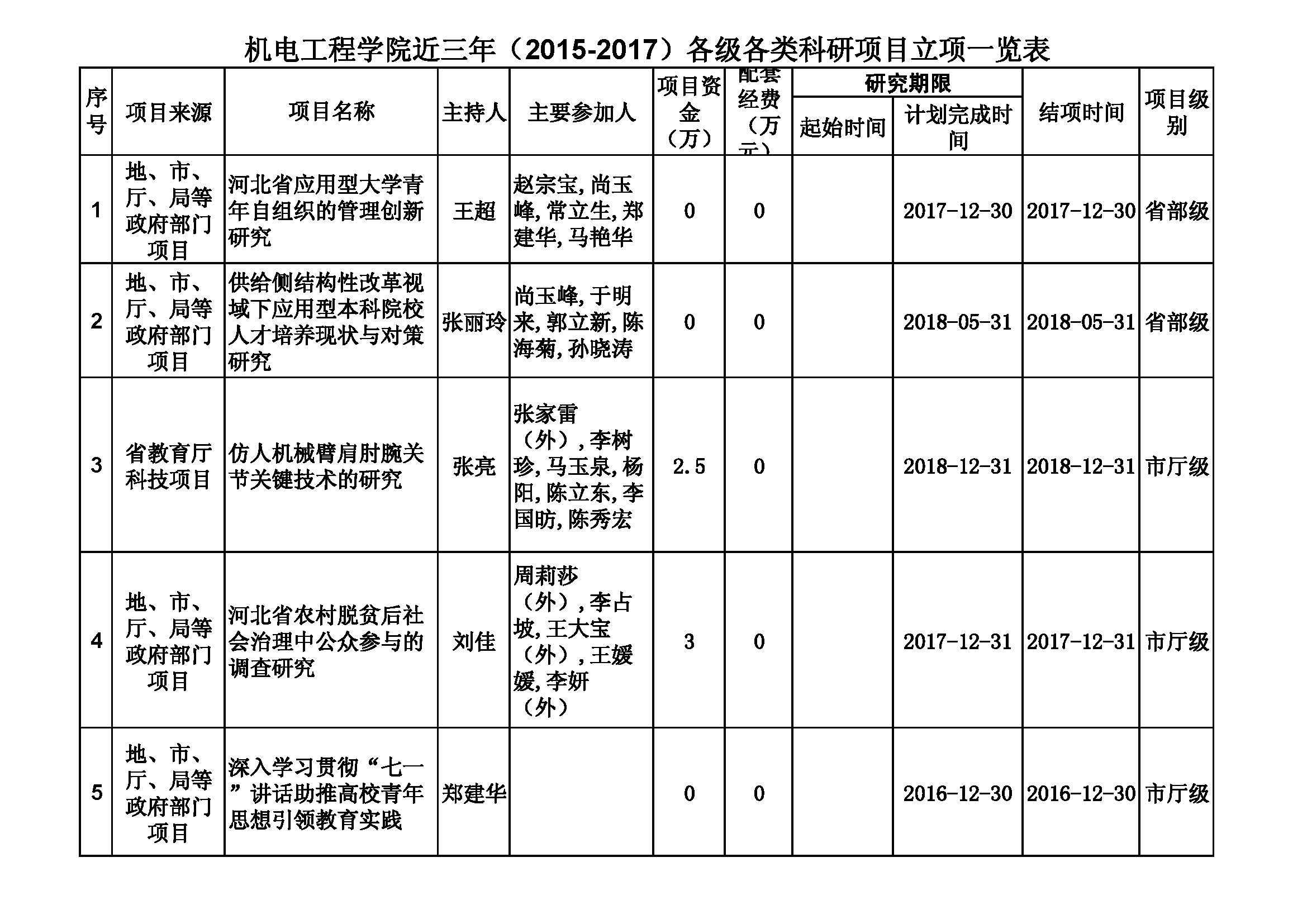 best365手机版官方网站近三年(2015-2017)各级各类科研项目立项情况