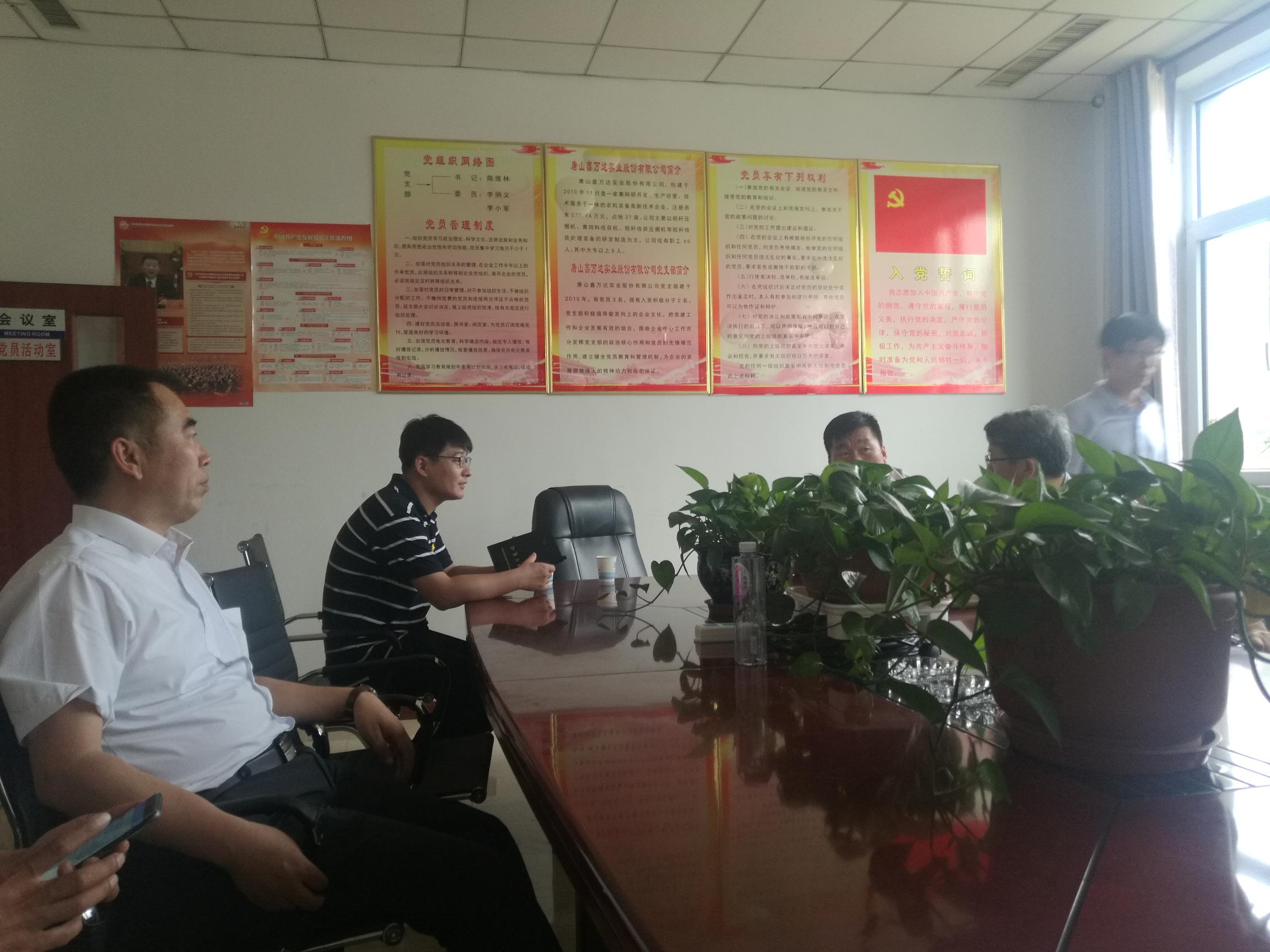2018年6月22日,best365手机版官方网站一行3人赴滦南县,与唐山鑫万达实业股份有限公司商谈河北省农机产业研究院合作事宜。滦南县科技局、滦南县委组织部及唐山鑫万达实业股份有限公司总经理李学永等参加了会谈。