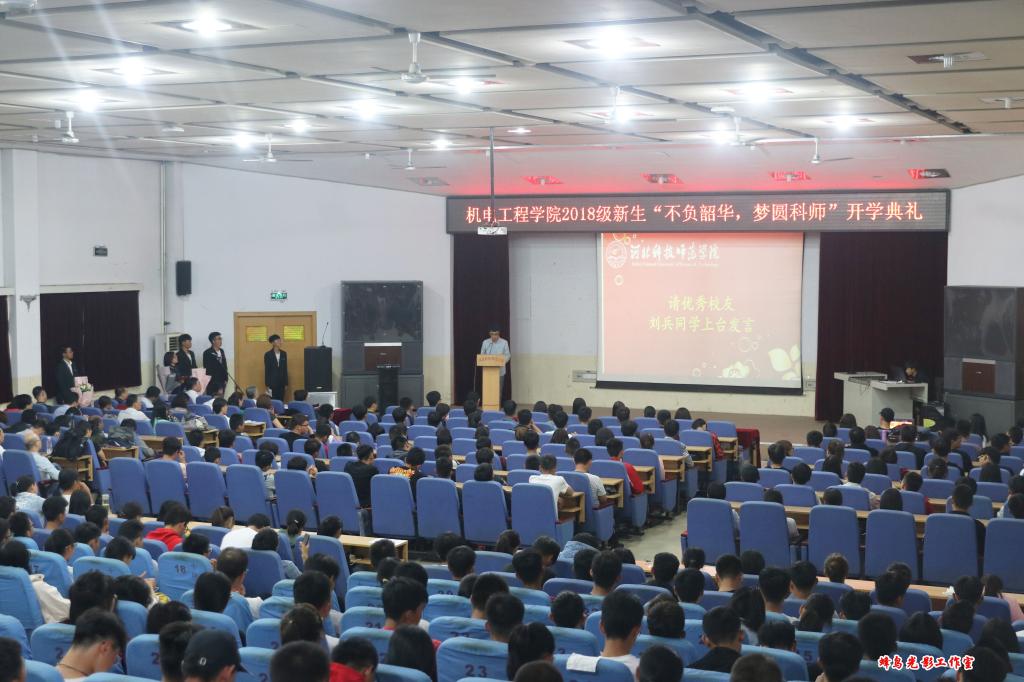 朗朗金秋,丹桂飘香。9月27日下午,best365手机版官方网站2018级新生“不负韶华,梦圆科师”开学典礼在昌黎校区学术报告厅隆重举行。机电学院领导班子、全体教职工、373名全体新生参加了开学典礼。