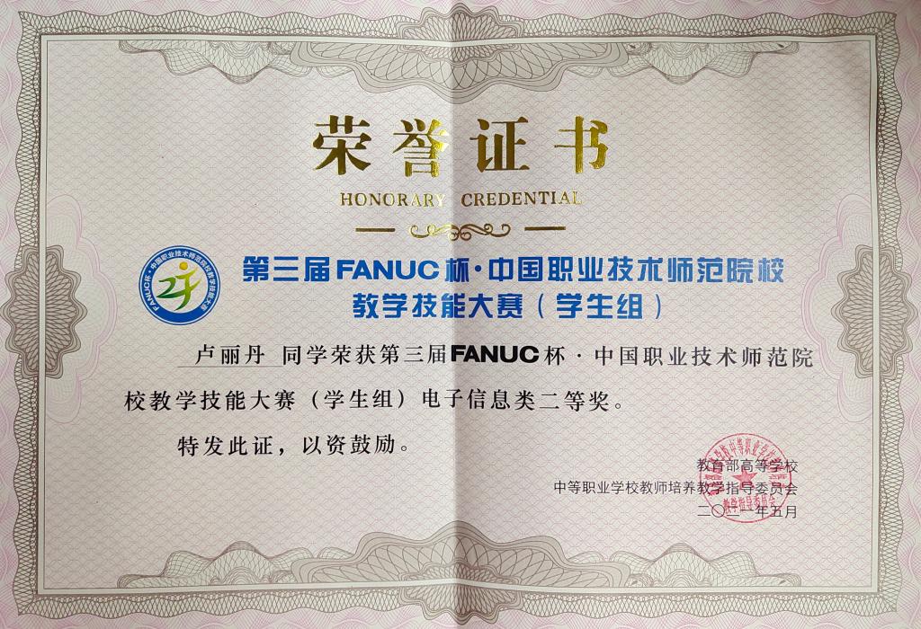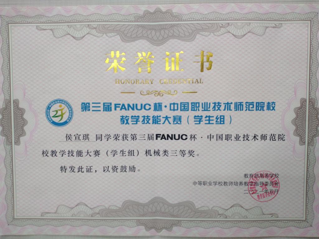 FANUC杯·中国职业技术师范院校教学技能大赛由教育部教师工作司指导,教育部高等学校中等职业学校教师培养教学指导委员会、中国职业技术教育学会职教师资专业委员会主办,北京发那科机电有限公司协办,每年举办一次。组委会决定第四届大赛由江苏理工学院承