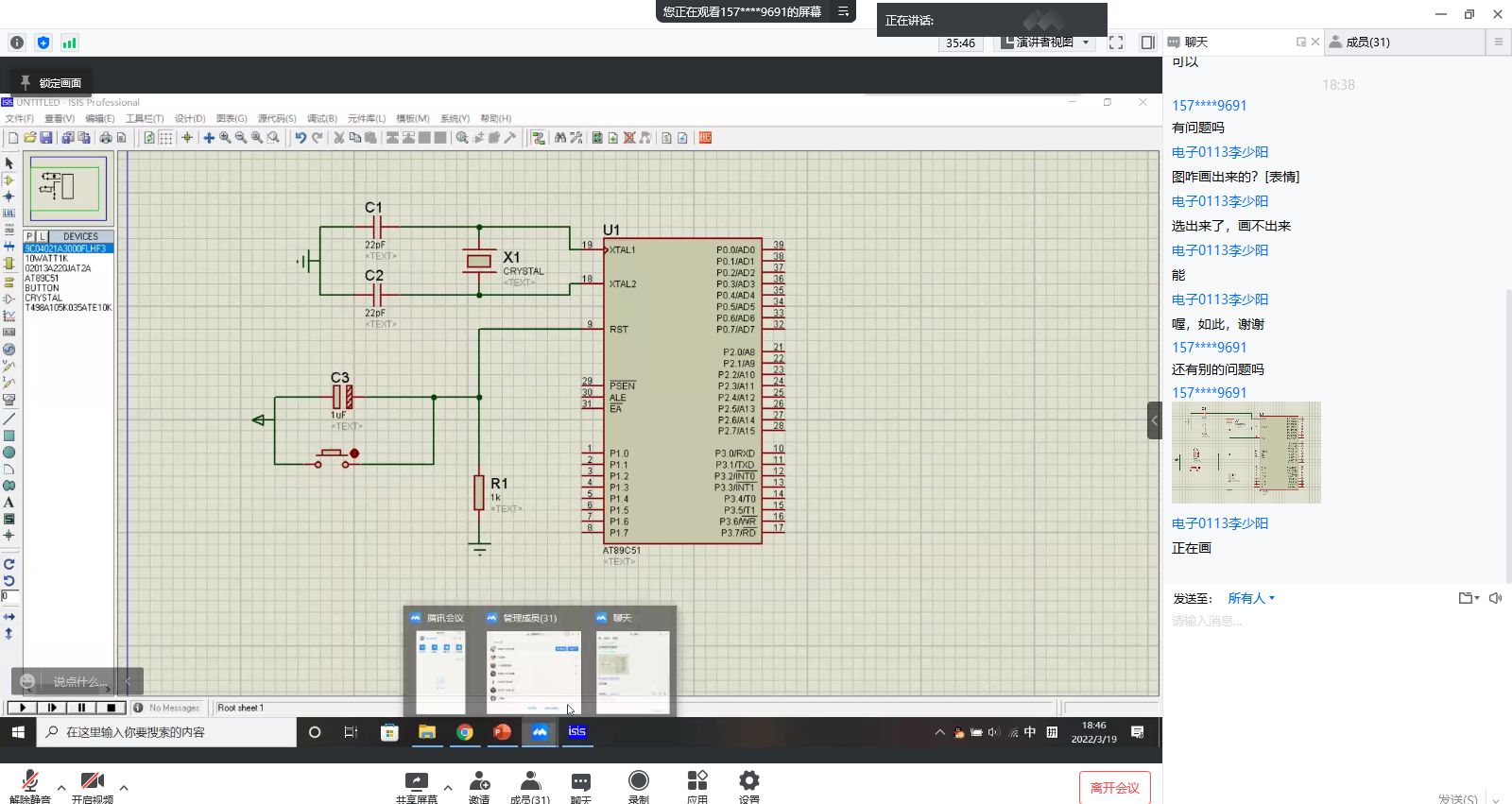 活动通过线上方式举行,内容围绕专业技能学习、电子信息知识科普、专业技能比赛展开。每周六、周日晚8点,嵌入式系统学习社大二同学通过腾讯会议开展第二课堂内容讲授。经过1个月的讲解,很多大一同学已经掌握单片机基本操作,通过使用相关仿真软件,能设计出简单的电路系统。非常设计联盟社团通过专业大赛训练提升同学们专业素养,在接到省里相关比赛通知后,对有意向参加比赛的同学进行专业选拔,通过在群里发布练习题、定期比赛考核的方式进行了为期3周的练习,并选拔出有竞争力的学生参赛。