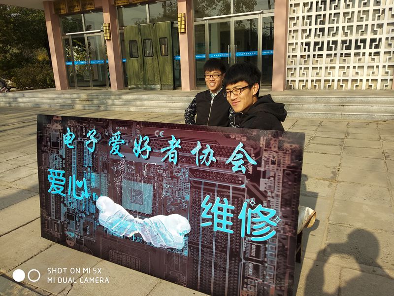 2017年11月12日至13日,电子爱好者协会在机电楼门前开展了“服务同学、提高自我”爱心维修活动,面向全校师生及附近居民对损坏的电器进行公益维修。