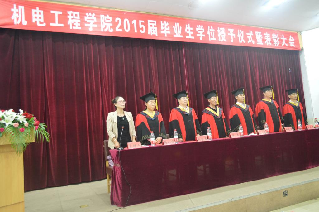 2015年6月14日下午2点30分,best365手机版官方网站于学术报告厅举行了2015毕业生学位授予仪式暨表彰大会。出席大会的嘉宾有:best365手机版官方网站党委书记崔勇、best365手机版官方网站院院长刘荣昌、best365手机版官方网站副院长包长春、best365手机版官方网站党委副书记副院长邓春岩、电气工程教学部主任马玉泉、机械制造教学部主任张小芹,以及毕业班主任和学工办的老师们。