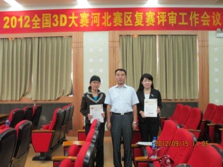 2012年9月15日,“全国三维数字化创新设计大赛河北赛区复赛”在河北工程大学举行。刘荣昌院长作为评审专家组组长参加了河北赛区评审工作。best365手机版官方网站代表队在此次比赛中荣获佳绩。由荣誉,李树珍指导的学生谢东东、蒋志敏、王炳刚、岳明松完成的作品“MOV MT”获特等奖,并将于11月参加全国现场总决赛;由陈芳,邓春岩老师指导的学生石秋磊、史纯淼、阮宝驹、罗聪聪完成的作品“双臂旋风挖掘机”获一等奖;由赵进尚,郑建华老师指导的学生白岩岩、任晓飞、刘晓正、邢增智完成的作品“华身车”获二等奖。