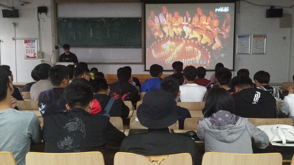 2018年5月12日下午5:30,17级机械设计制造及其自动化团支部于主楼C108举办以“祭奠汶川大地震十周年”为主题的悼念团日活动,本次活动由17级机制全体同学参加。