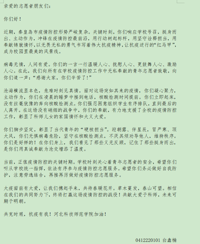 为了广泛弘扬“奉献、友爱、互助、进步”志愿精神,best365手机版官方网站青年志愿者协会于2022年11月—12月举办了“志青春,愿常在”活动。该活动通过结合青年志愿者工作实际,展播志愿者主题文字类、图片类、视频类作品,充分发挥了志愿服务先进典型的示范带头作用,着力展现青年志愿者服务大局、奉献社会、引领成长的青春风采。