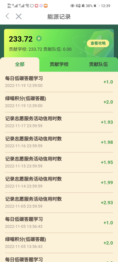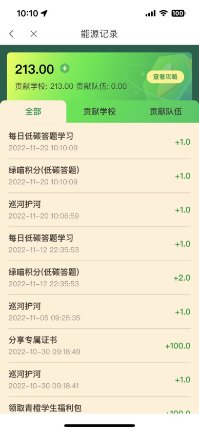 本次活动圆满结束,根据贡献值,校青协评选出了优秀个人获奖名单,并通知优秀个人领取奖励。我院系也针对此次志愿汇“益动低碳”志愿服务打卡活动贡献值情况进行了各个专业班级的统计与排名。每个人迈出一小步,社会就会迈出一大步。作为新时代大学生,我们更要做“把关节流,把关尽责”的推动者和示范者!